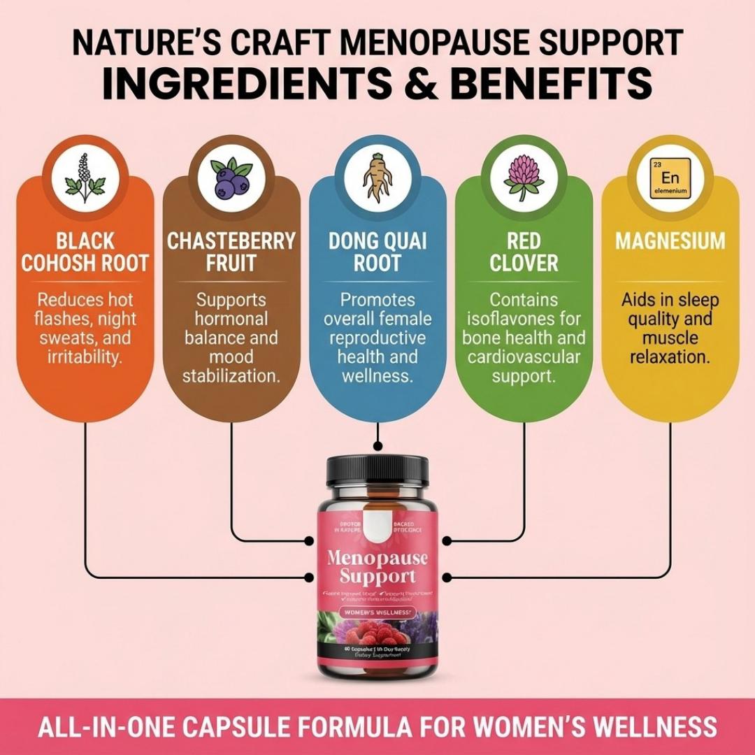 Natural relief from hot flashes, night sweats & irritability - Helps reduce the intensity of hot flashes and night sweats while supporting emotional balance — without synthetic hormones.
